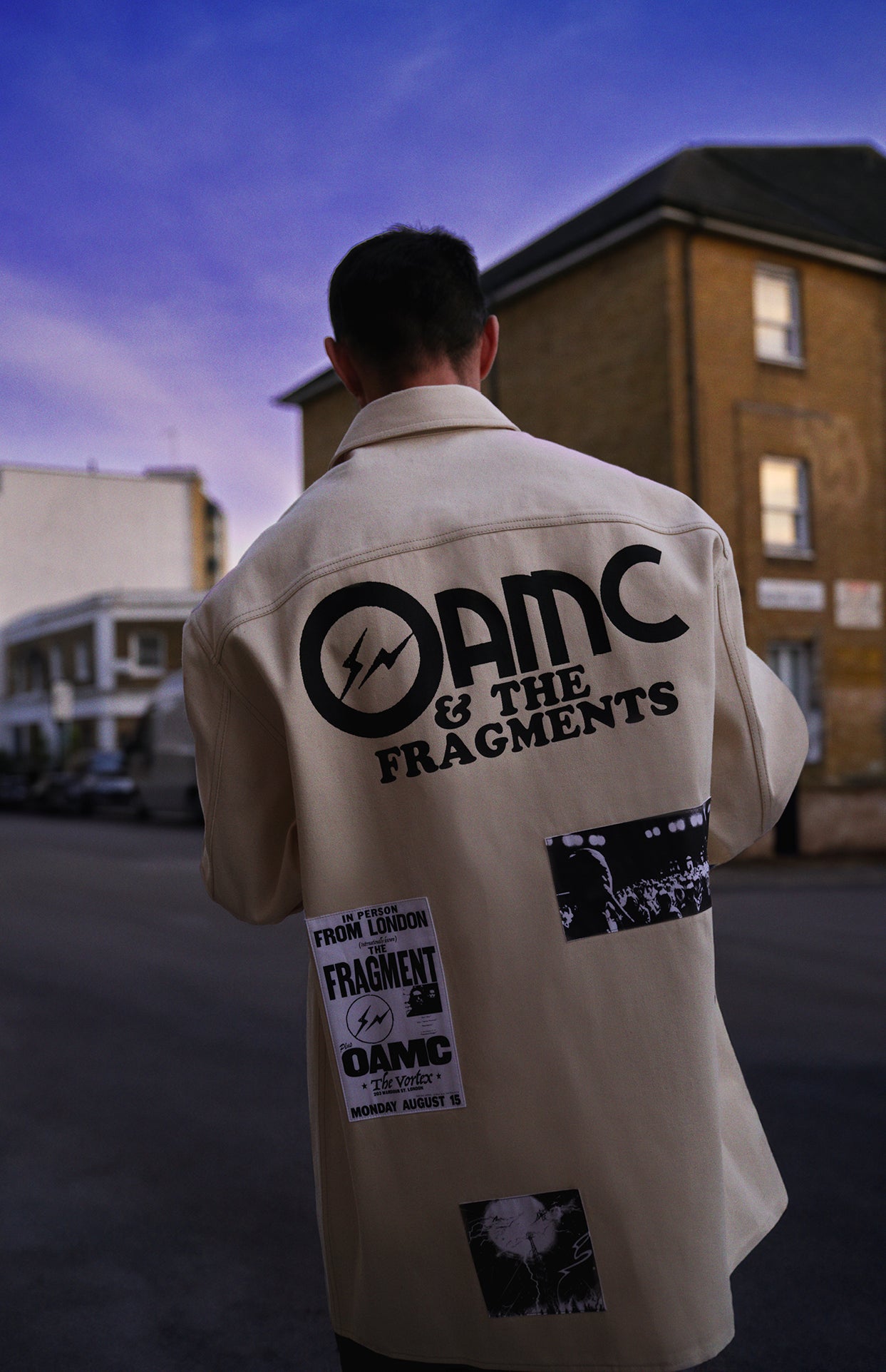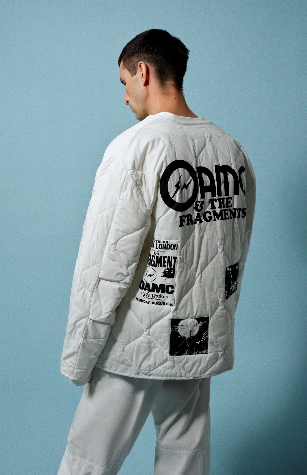 The pieces feature custom-designed artworks printed on cotton patches, alongside the OAMC and fragment logos printed directly on the garments.