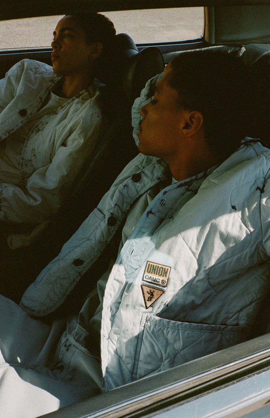 OAMCとUnionは、Unionの30周年を記念にチームを組み、4ピースのカプセルコレクションを発売しました。このシリーズには、コットンポプリン製のパッド入りキルティングライナー、オーバーサイズシャツと、イタリア産極細ダブルウィーブコットンギャバジンで仕立てたストレートレッグのワークトラウザーズ、そしてイタリア産オーガニックコットンの軽やかな半袖Tシャツが含まれます。