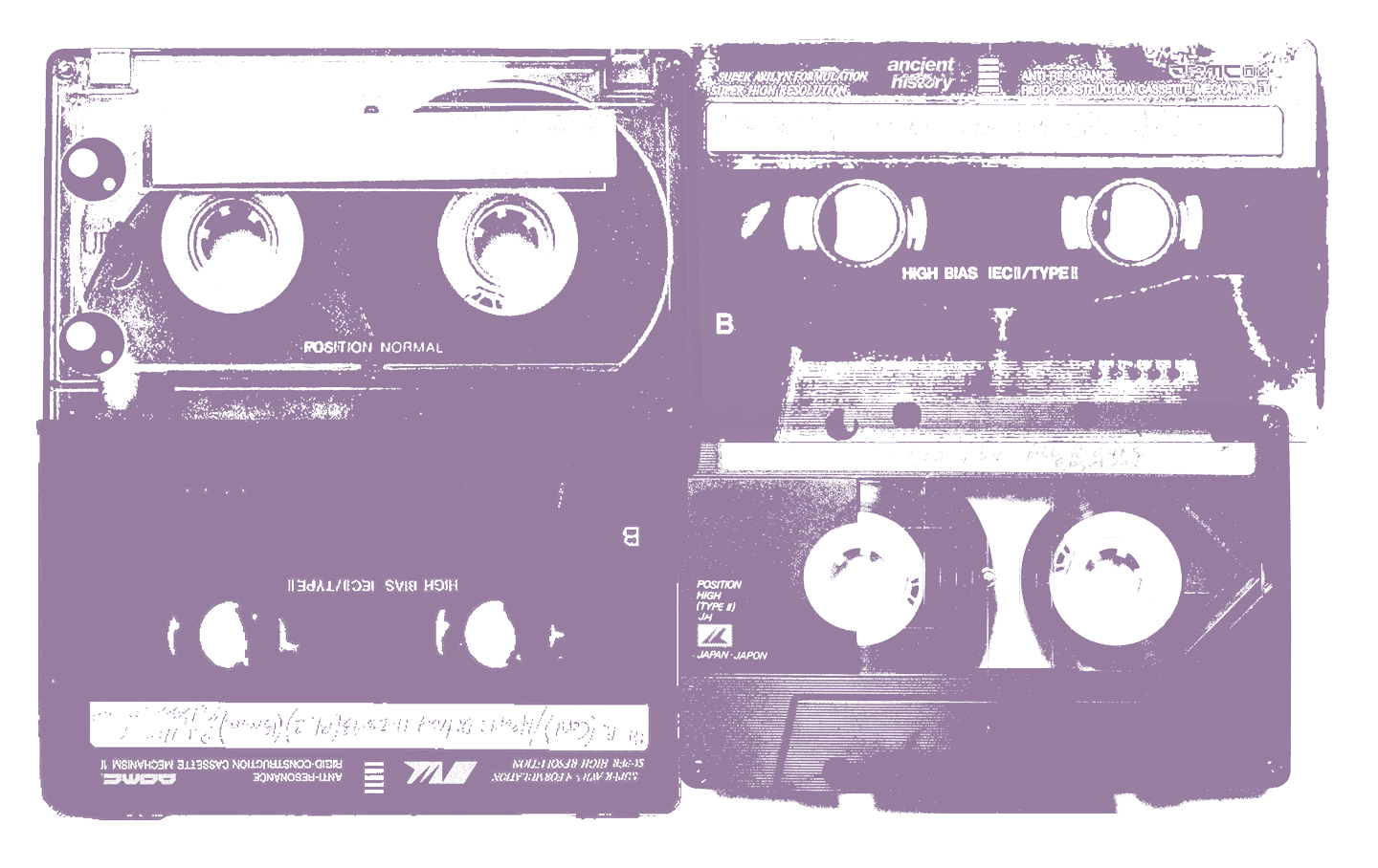Layering is also important. Both in terms of building the silhouette, but also to provide a visual depth by way of sheets of printed organza and printed graphic poplin. The illustrative work reflects a change in time and place through the exploration of how the recent past feels like ancient history. Cassettes, reel to reel machines, vhs tapes, tv static; all forms and aspects of technology which are not from too distant a past, but today feel distinctly ancient. The concept of time and recent history is one that casts a long shadow over how we all interact. The changes in the way we consume media, the revolutions that have taken place in the past 20 years, while present in the mind have now truly created ‘recent ancient’ history.