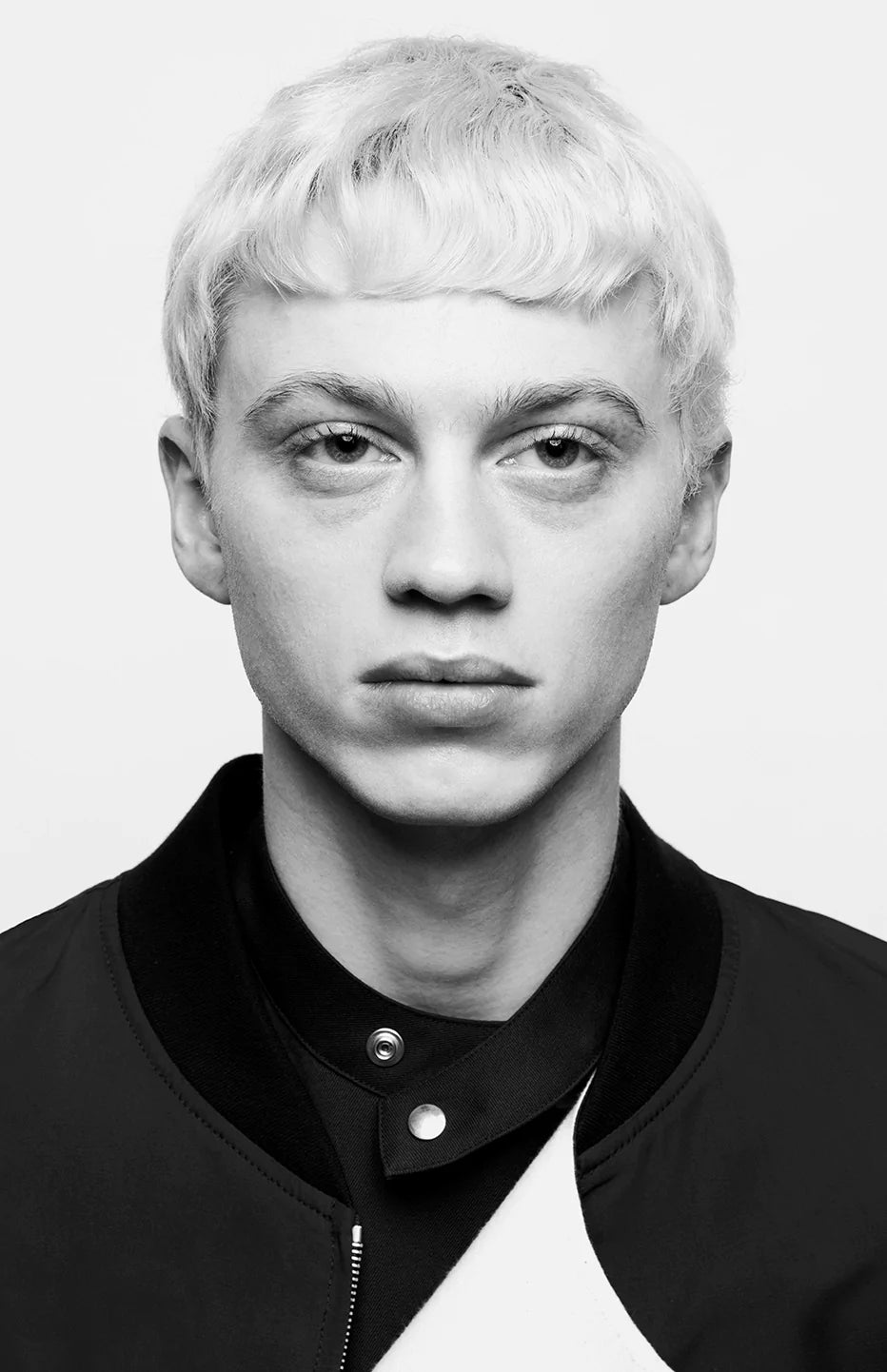 布地は特別に開発されたものです。フェルト加工を施したコンパクトなテーラリング仕様ウール、弾力感に富み、ハンマードの質感が特徴のダブルフェースウール、とろみのあるヴィスコース、キルティングを施したプリント入りベルベット、耐久力に優れたローコットンギャバジン、製品染めを施したリサイクルドナイロンセルジュやシャリ感のあるコットンポプリン、角のはっきりしたワークウェアのリサイクルドポリエステルなどが見られます。しなやかなナッパレザーにはパッドを入れて繊細に仕上げ、巻き毛のムートンがアクセサリーにふんわり感を加えます。ブーツやシューズにはがっしりとしたソールを付け、しなやかなレザー製のアッパー、そして縫い合わせの少なさが特徴です。OAMCならではのコントラストアウトソールクリップで、混じり気のない、力強いフォルムに安定感を与えました。