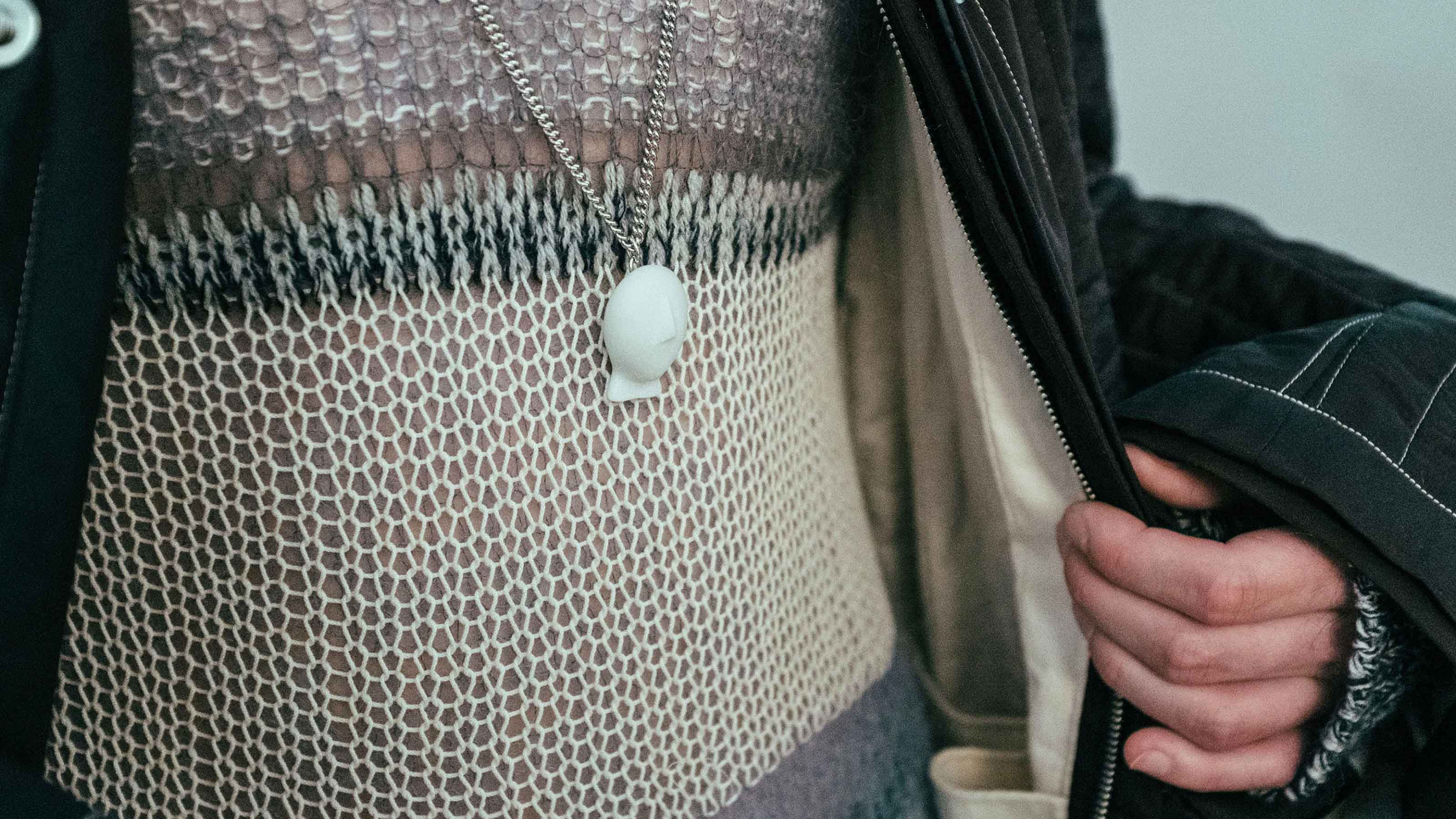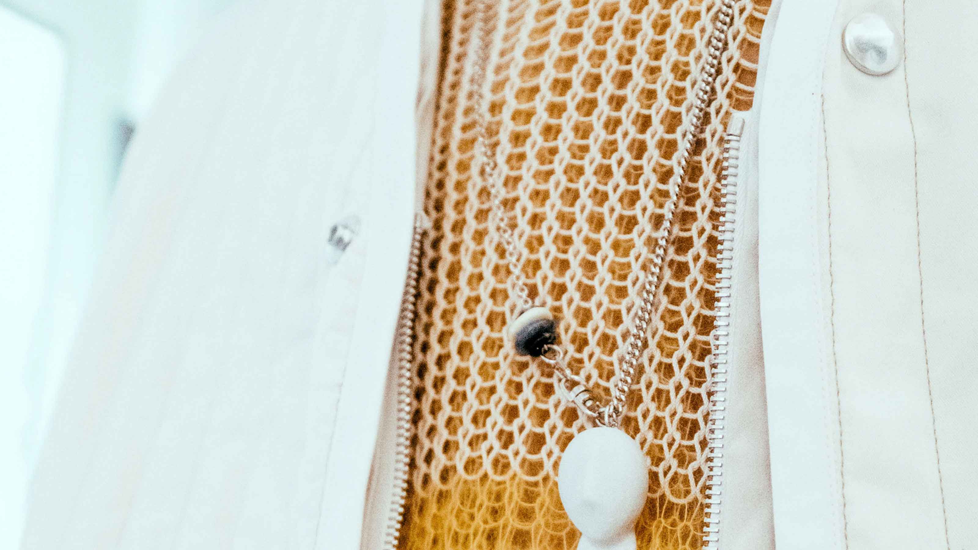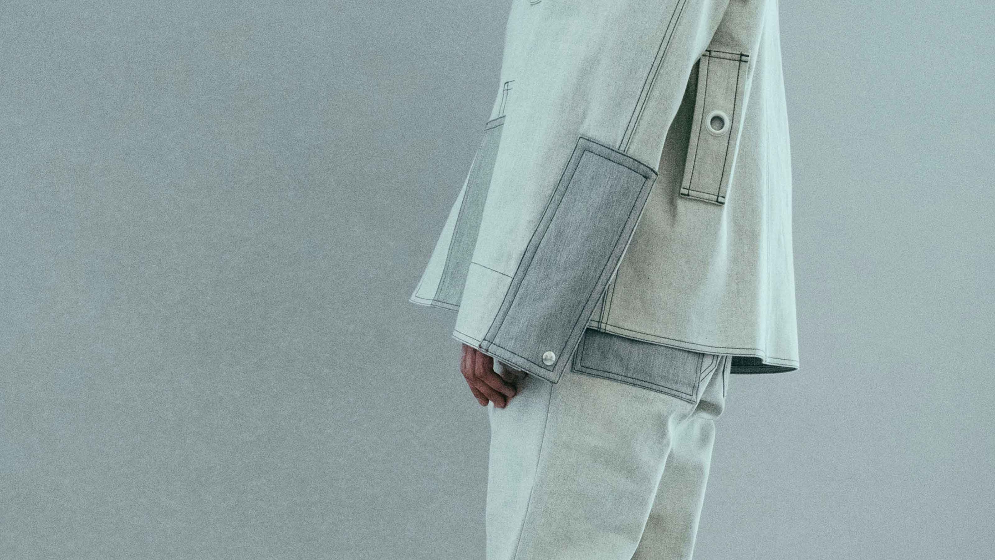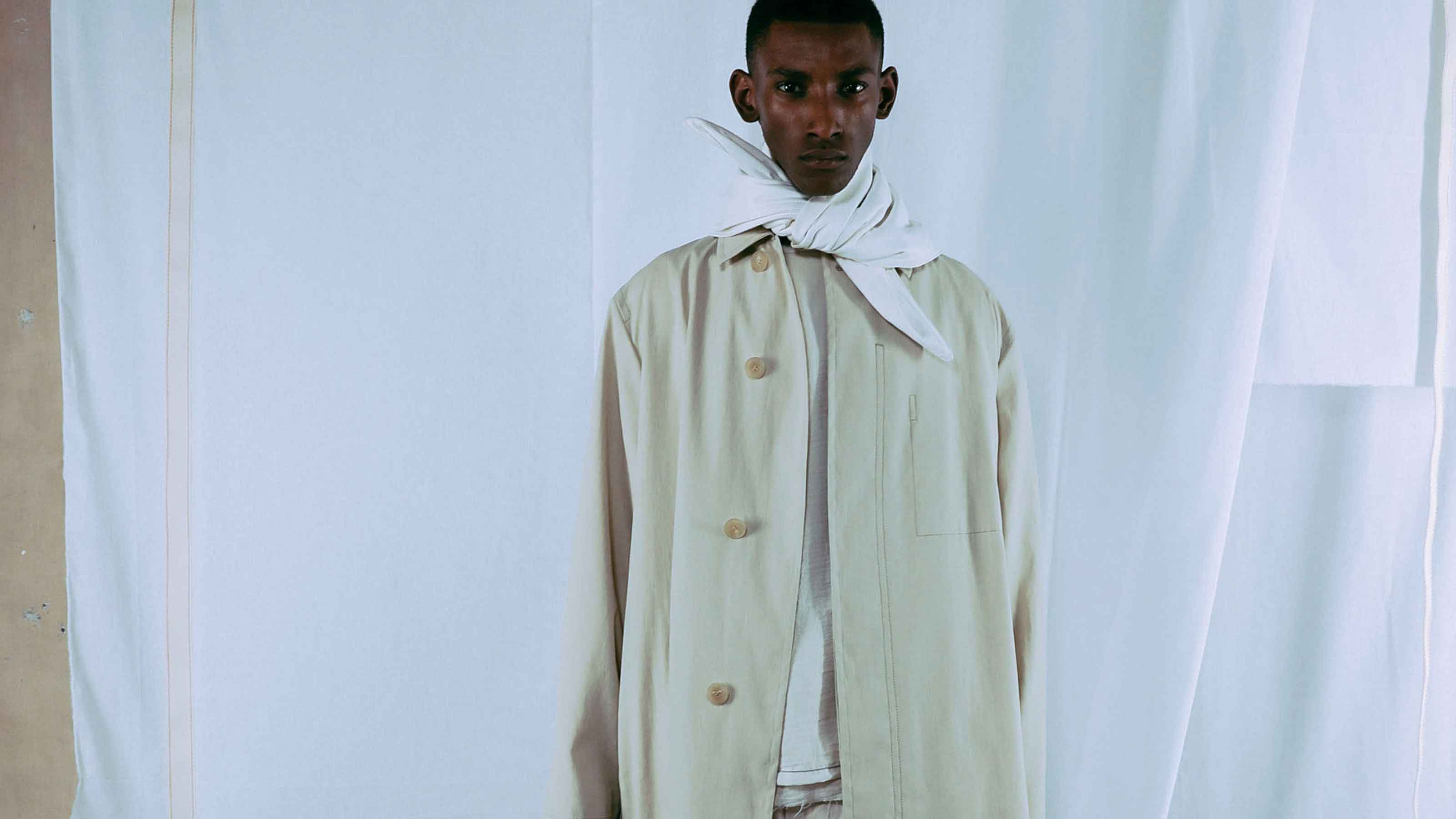 シルエットは軽やかなレイヤードスタイル。ベルトで締め、インダストリアルな金具で留めた膨らみのあるトップコートを、カットオフ仕上げのチーズクロス製シャツに重ねています。ボクシーなテーラリングやユーティリティシャツにはプレス加工で鋭角に仕上げ、細身でシャープなトラウザーズを合わせることで、長めでエレガントなシルエットを作り出しています。ひざ下でカットしたたっぷりとしたショートパンツと、軽やかでギャザーを寄せた、短めのドローストリング入りトラウザーズには、ロング丈のリブ編みソックスや、脚全体を覆うフルレングスのソックブーツを合わせました。マクロな質感の斜めリブニットや、オープンステッチのダブルフェイスモヘアコットン製セーターは、ユーティリタリアンなエプロンの上に重ねたり、ギャザーを寄せてウエストを絞ったりしてスタイリングされています。シャープで幾何学的なカットのレザーシャツやコートに、プリントボイルのスカーフやブランクーシの「眠れるミューズ」をモチーフにしたシャツを合わせました。ピローバッグには丈夫な革紐ハンドルを付けることで強度を増し、レザーやフリンジ付きコットンモスリン製のスカーフを三角形に結んでいます。軽やかなシルクのキルティングを重ね、水彩画のようなモチーフをあしらいました。